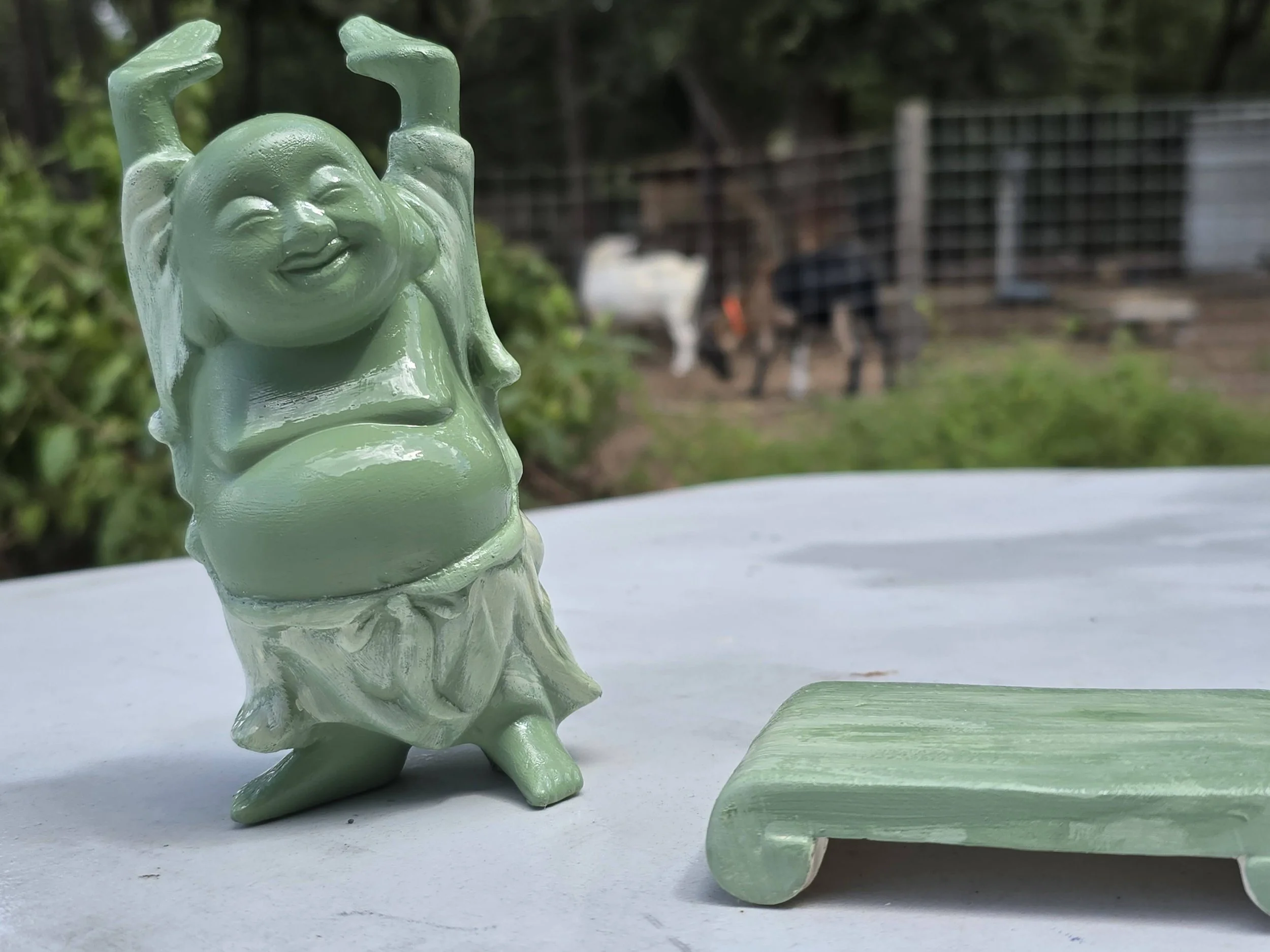 Once your pieces are painted and dried they are ready to SPRAY & DISPLAY! Dry time is usually quick with acrylics. We will spray them with a protective finish - glossy or matte - and your finished pieces can be handled and taken home in minutes!